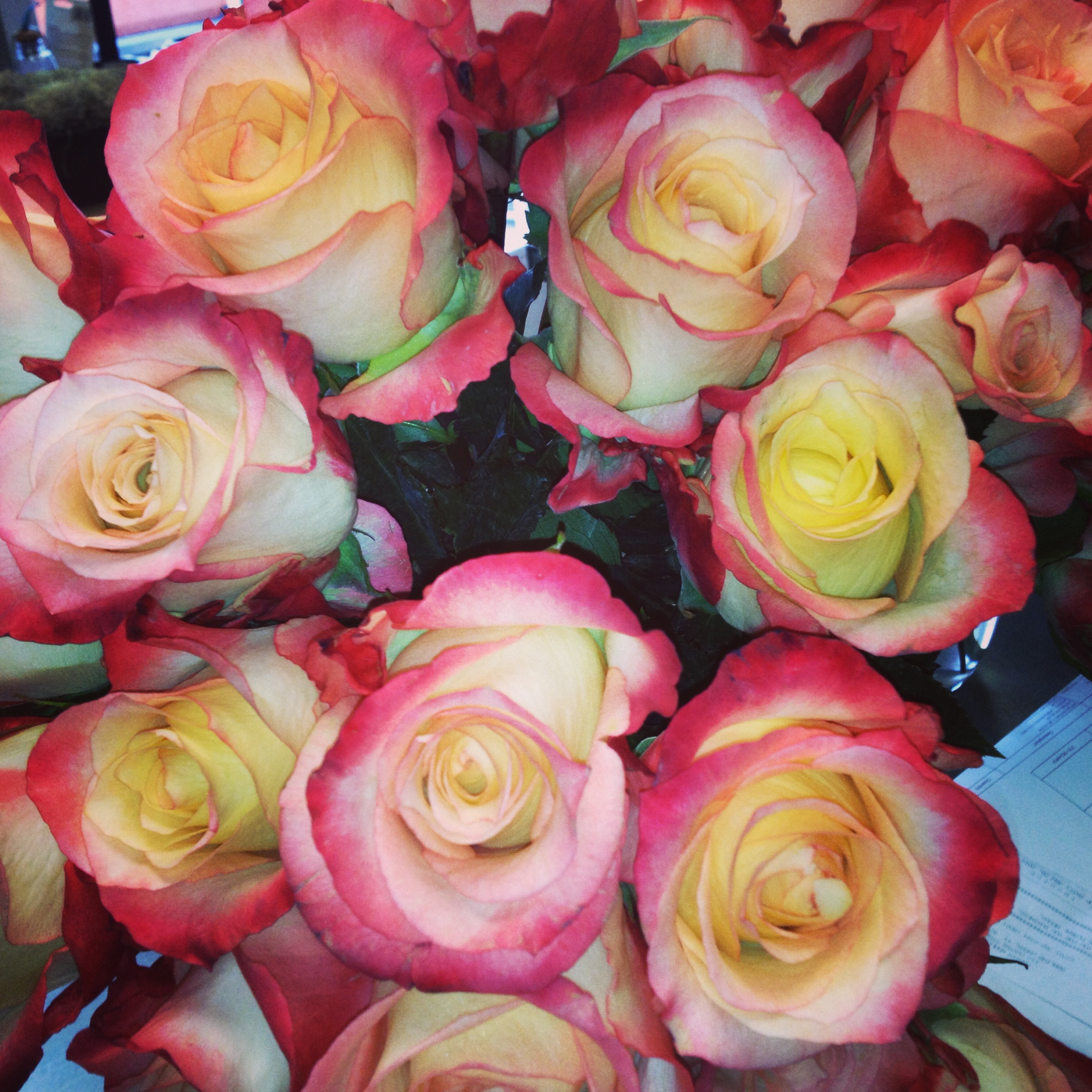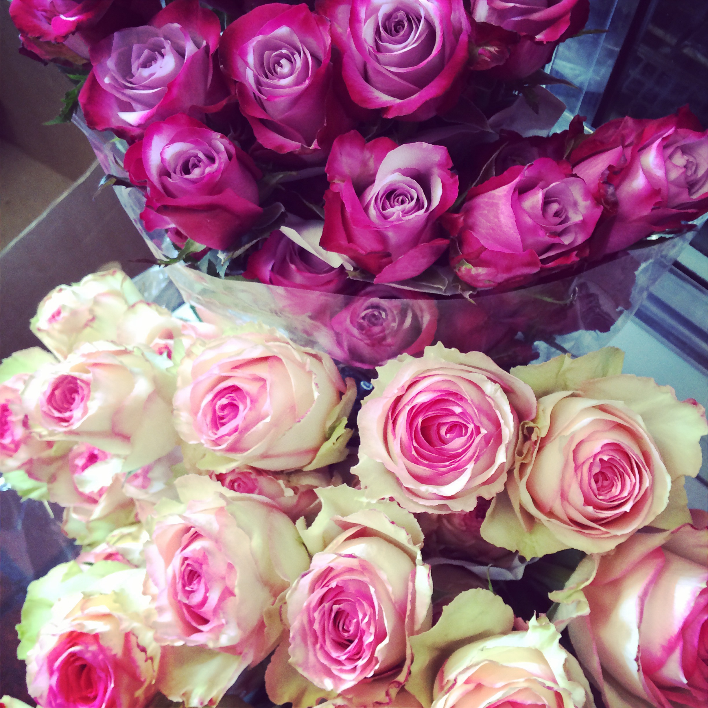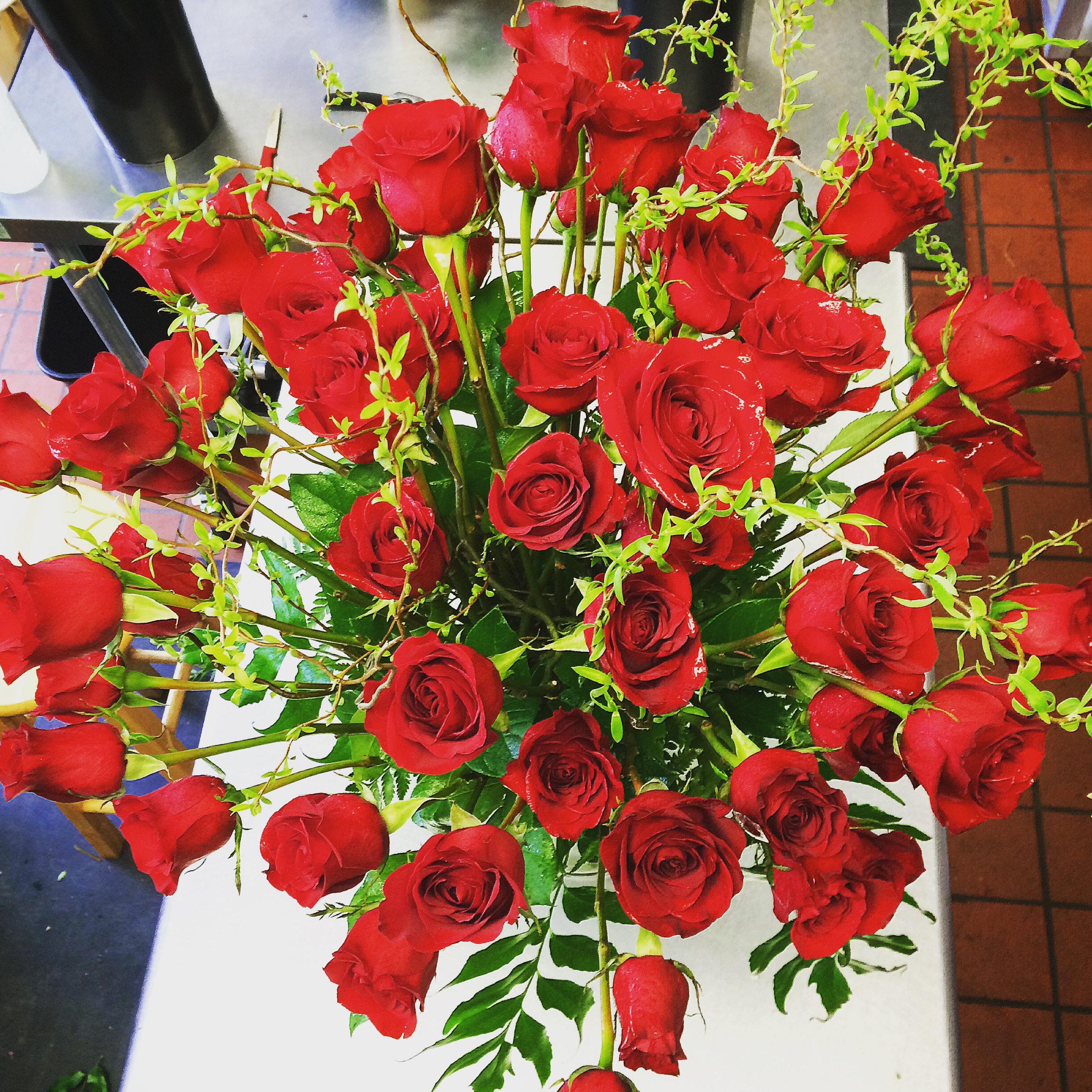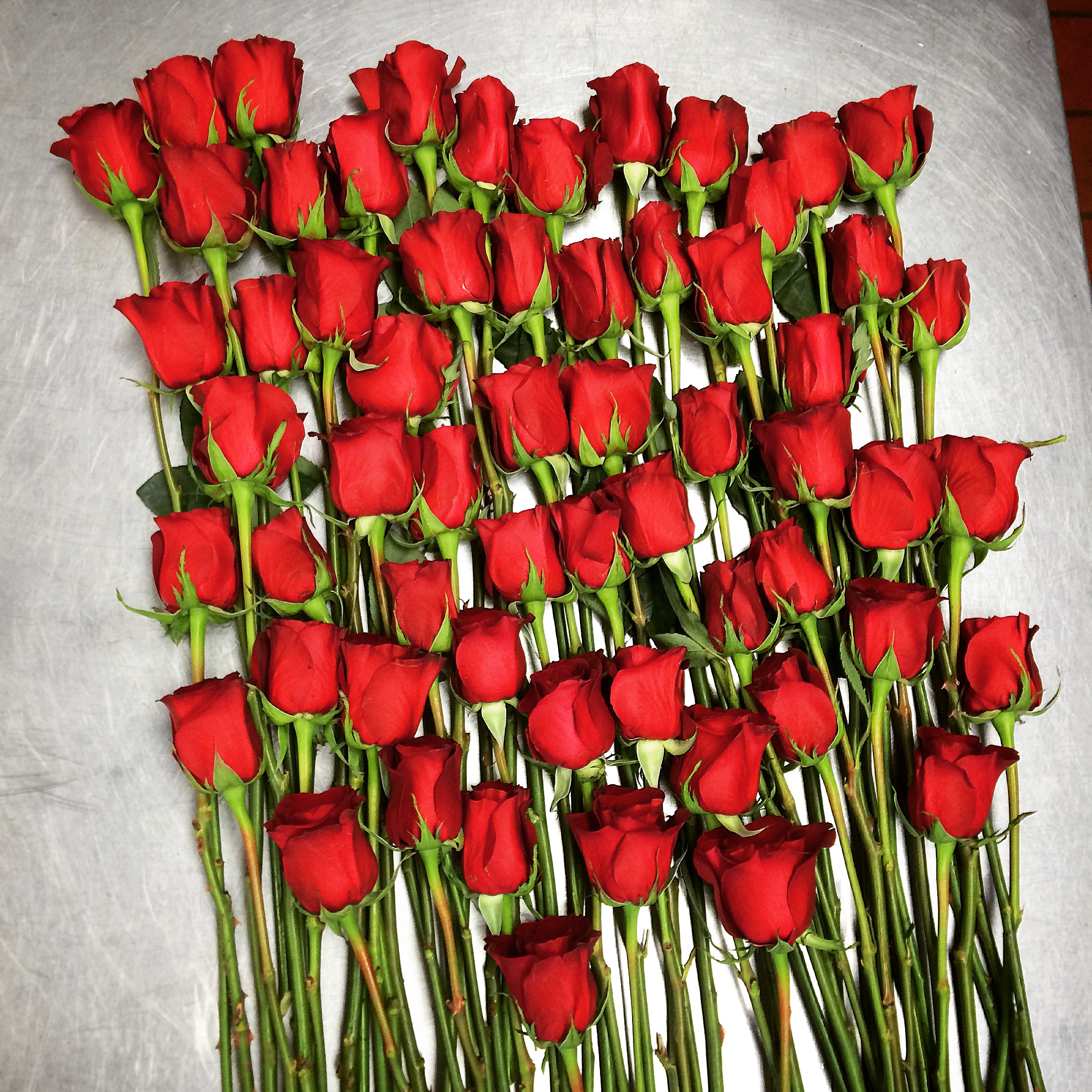 1 dozen roses in box w/cellophane | $60